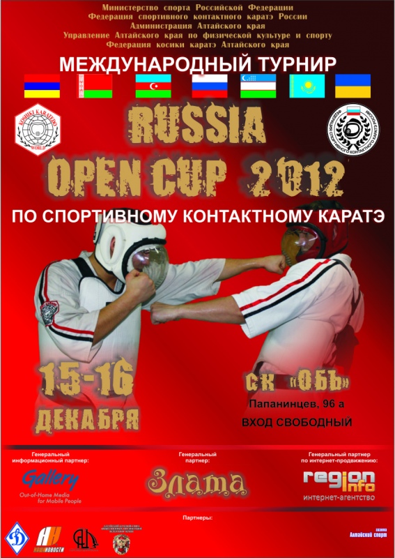 15-16 декабря 2012 года в спортивном комплексе "Обь" в Барнауле пройдет Международный турнир Russia Open Cup по спортивному контактному каратэ. На этом турнире будут выступать сильнейшие спортсмены секции косики каратэ спортивного клуба "Титан".